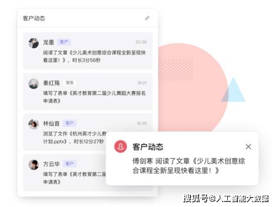 客户外流这类难题的关键所在沒有提早掌握消费者要求,而互客正巧防止了这类难题的发生。销售工作人员能够自身编写文章内容、宣传海报、表格或者微信小程序等,当有客户阅读文章或是填好表格时,它便会全自动捕获客户重要个人行为,即时通告销售。便于不断跟踪客户。