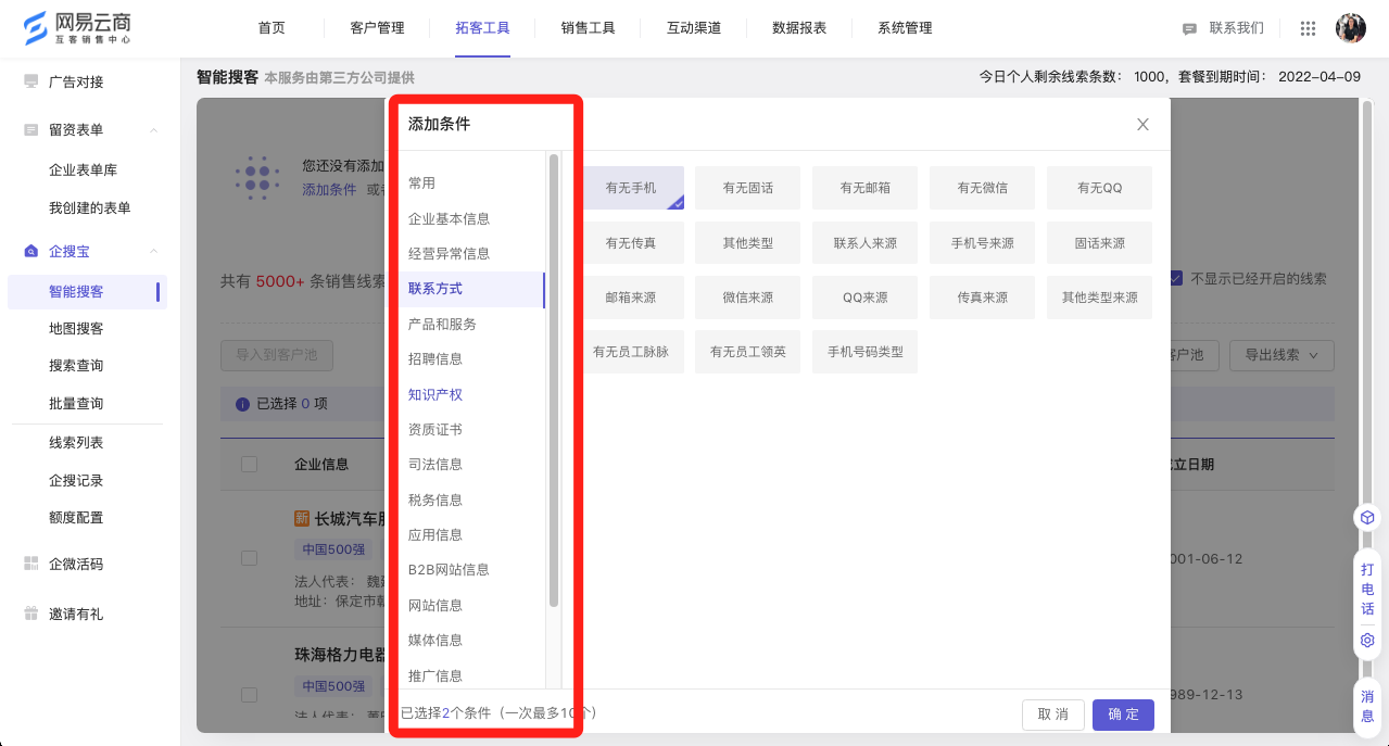 网易互客企搜宝获客系统怎样精准获客助推B2B企业?最先,网易互客企搜宝获客系统遮盖了全国各地 1.3 亿 企业、20 大类领域公布信息资讯、上百个企业层面,多方位助推分析企业数据仓库,不仅是工商局数据信息,并且数据预处理强、升级頻率快;次之,网易互客企搜宝获客系统一站式获客营销服务可完成“找案件线索-通电话-做营销推广-管案件线索-报表中心”系列产品步骤,还能够与“网易互客CRM电话机器人、网易互客SCRM市场销售管理系统软件”无缝拼接,从而协助企业完成“一体化智能营销管理方法云服务器”;最重要的一点,网易互客企搜宝获客系统还能够依据企业本身应用要求,给予“数据信息版、营销推广版”多种多样规格型号版本号套餐内容,协助企业完成“效率高、高品质、成本低”的智能营销获客,且每一个身份证号日查总数能够随意应用,只需每日总查询量不超过企业总金额度就可以,假如还不够用,能够附加再购置总流量,灵便、便捷、不消耗,协助企业真真正正保证将企业推广费用在刀刃上。