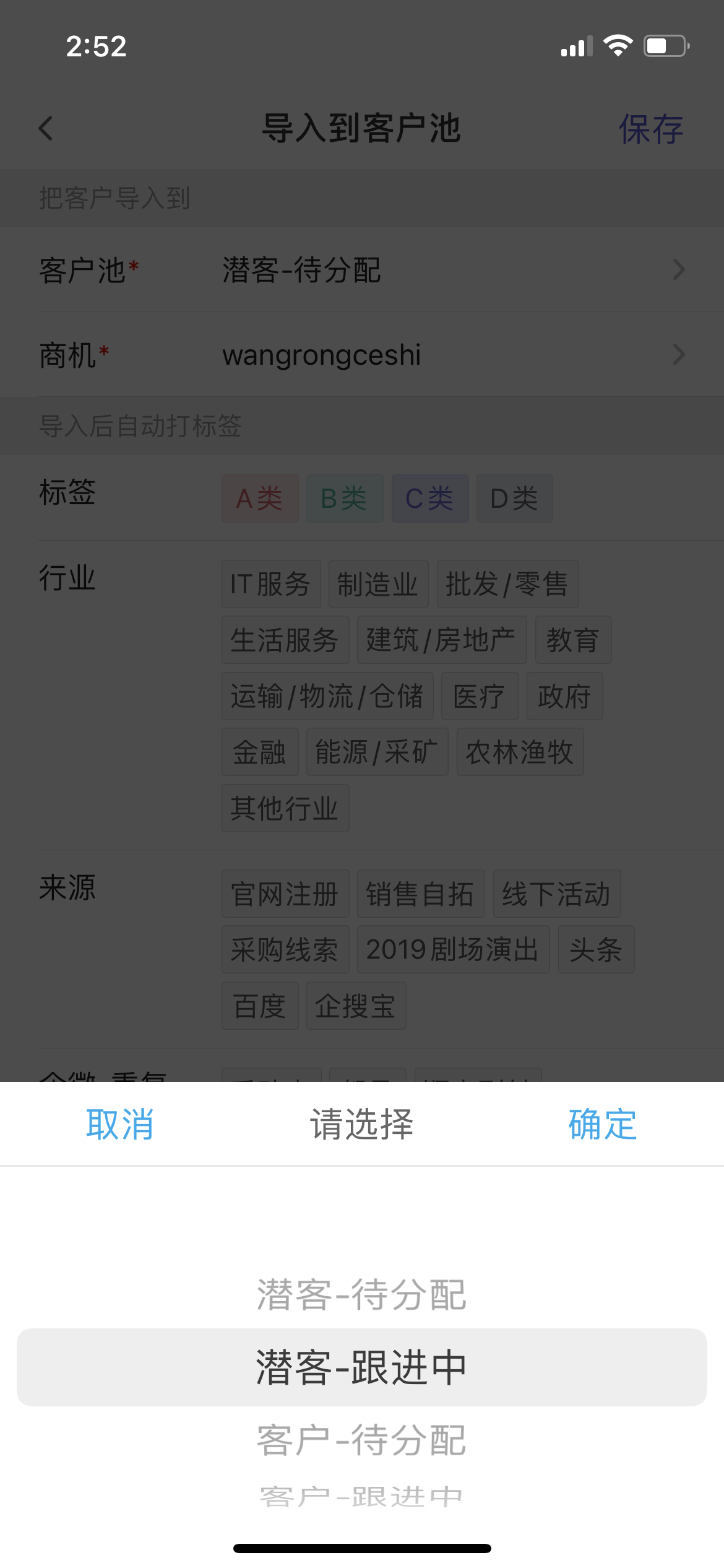 系统内所有导入客户池的弹窗(比如内容访客的导入),可以选择把客户导入到哪个客户池中。这里可以选择当前角色有权限的客户池,包括