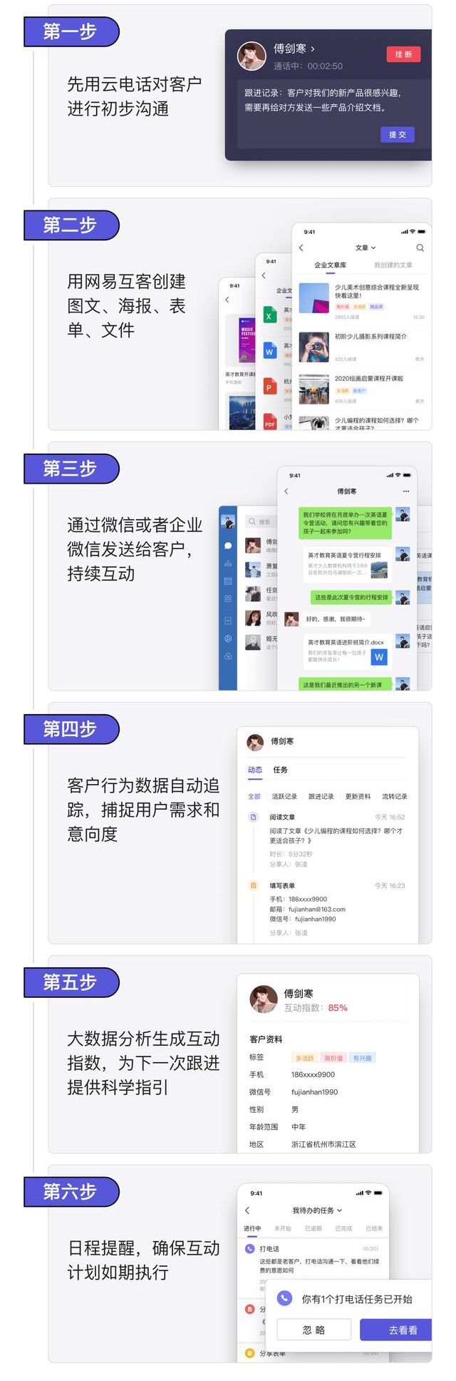 销售可以使用互客,通过微信、电话、短信等渠道和客户沟通互动,一站式完成客户跟进和管理。