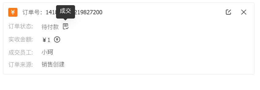 当客户有意向下订单时,可创建待付款类型订单,回款完成后,再将订单成交,再次确认客户实际付款情况。成交后的订单才进入业绩统计。