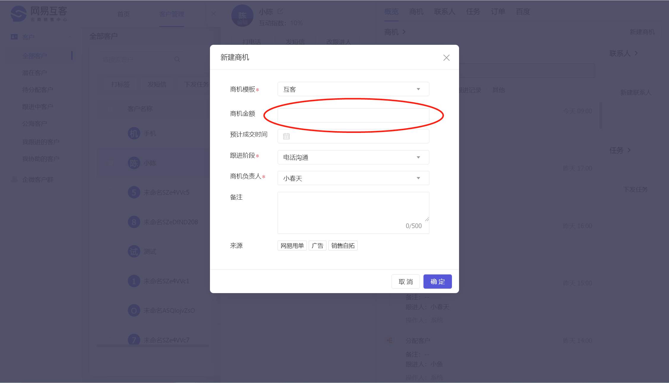 未成交商机也可以填写商机金额