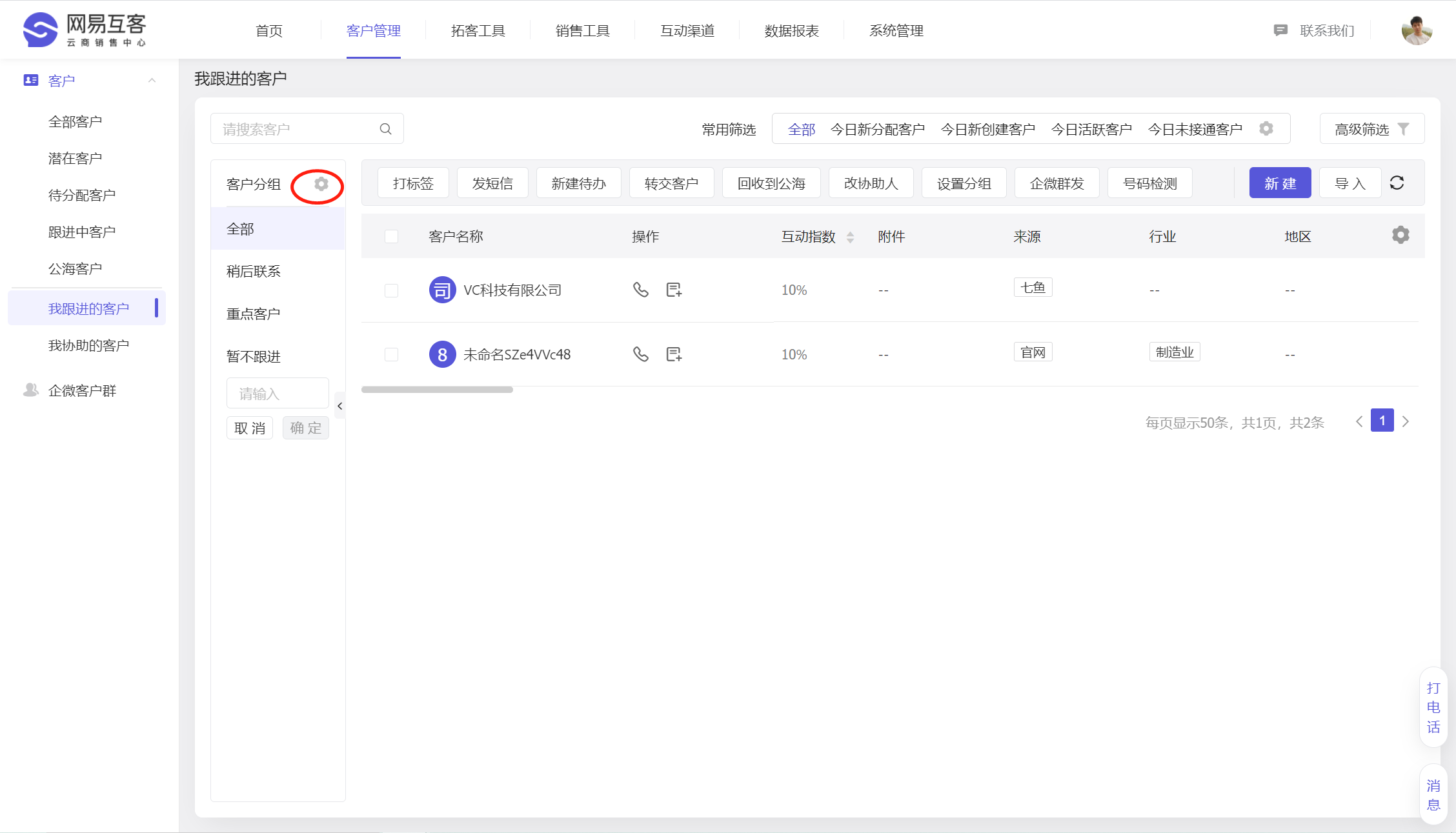 我们支持每个销售同学可以根据自己的销售习惯,去自定义客户分组,提升客户跟进效率。